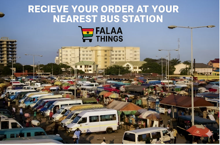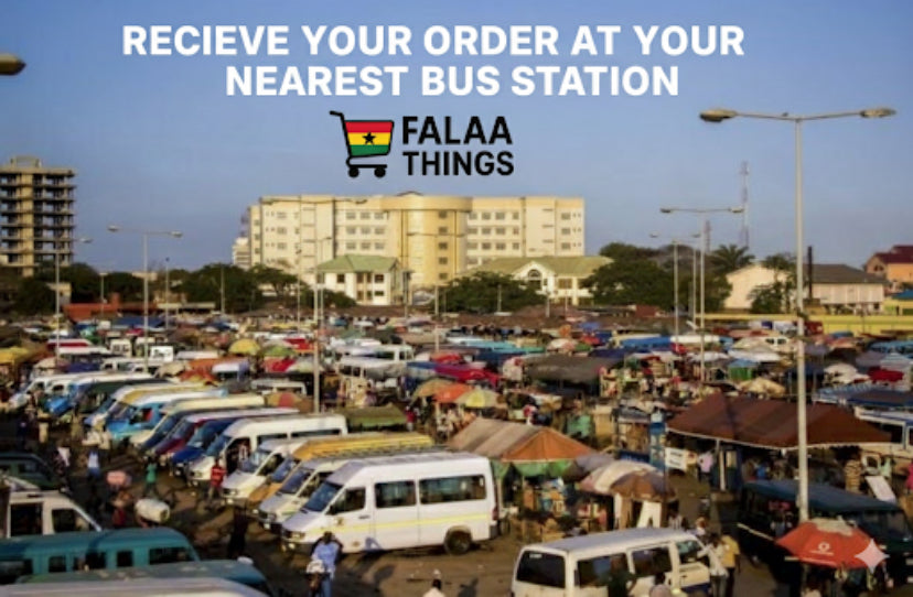 All deliveries are sent to the nearest bus station in your town or city. This ensures safe, fast, and reliable delivery across Ghana.