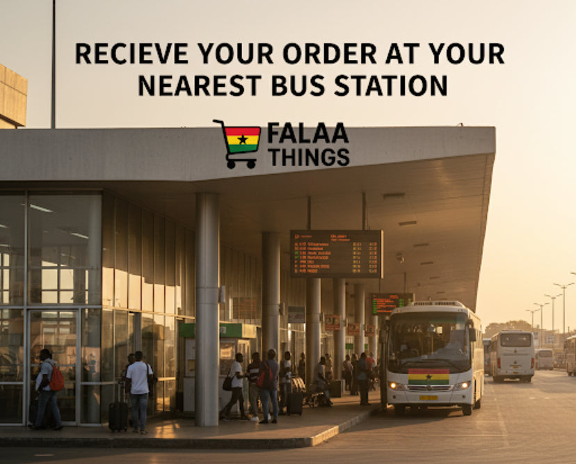 All deliveries are sent to the nearest bus station in your town or city. This ensures safe, fast, and reliable delivery across Ghana.